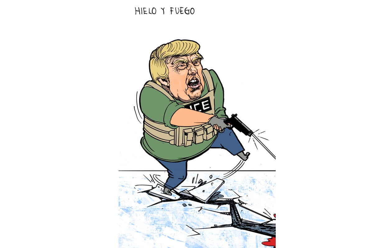 ◻️ Minesota obliga a Trump a cambiar sus tácticas. En respuesta a la creciente indignación nacional por el comportamiento de los agentes de inmigración en Minesota, el presidente Donald Trump se vio obligado a destituir a su jefe de operaciones en Mineápolis, considerar un cambio de tácticas y comprometerse a investigar las muertes de dos ciudadanos asesinados por agentes del ICE. En todo el país, florece la resistencia pacífica ante la autocracia violenta de Trump. Jorge Durand escribe sobre cómo la solidaridad de ciudadanos estadunidenses con los migrantes “se ha convertido, en muchos casos, en una respuesta masiva de la población.”