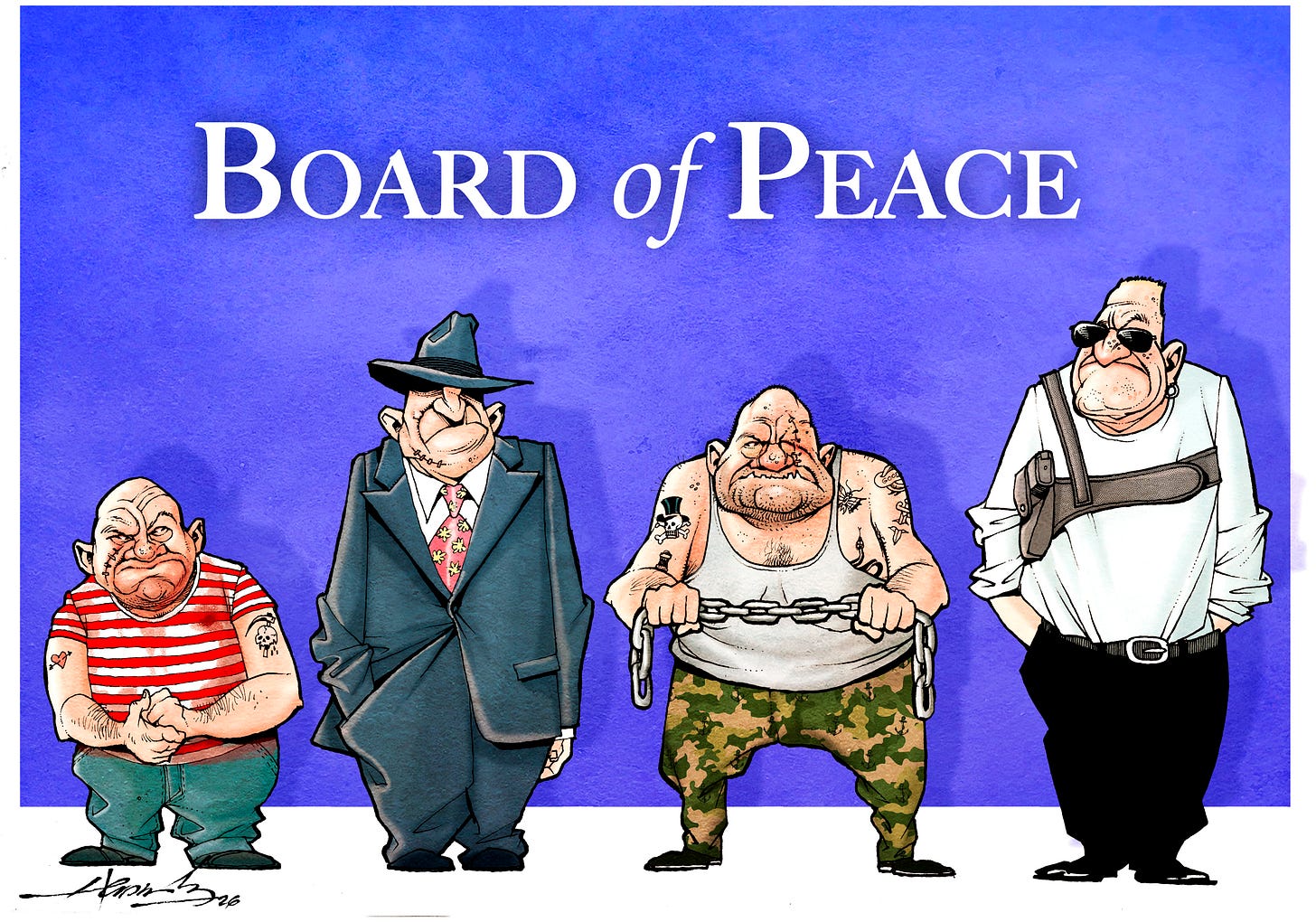 ◻️ Junta de la Paz: Orwell va a Gaza. La Presidenta explicó que México está analizando la invitación de Donald Trump a unirse a su Junta de Paz sobre Gaza y, en este contexto, recordó que México ha reconocido a Palestina como nación. En un editorial, La Jornada califica dicha Junta como "un proyecto personal del mandatario para sustituir el orden internacional vigente por un organismo en el que todos le rinden pleitesía y le otorga el poder de decisión en todos los asuntos a su cargo".