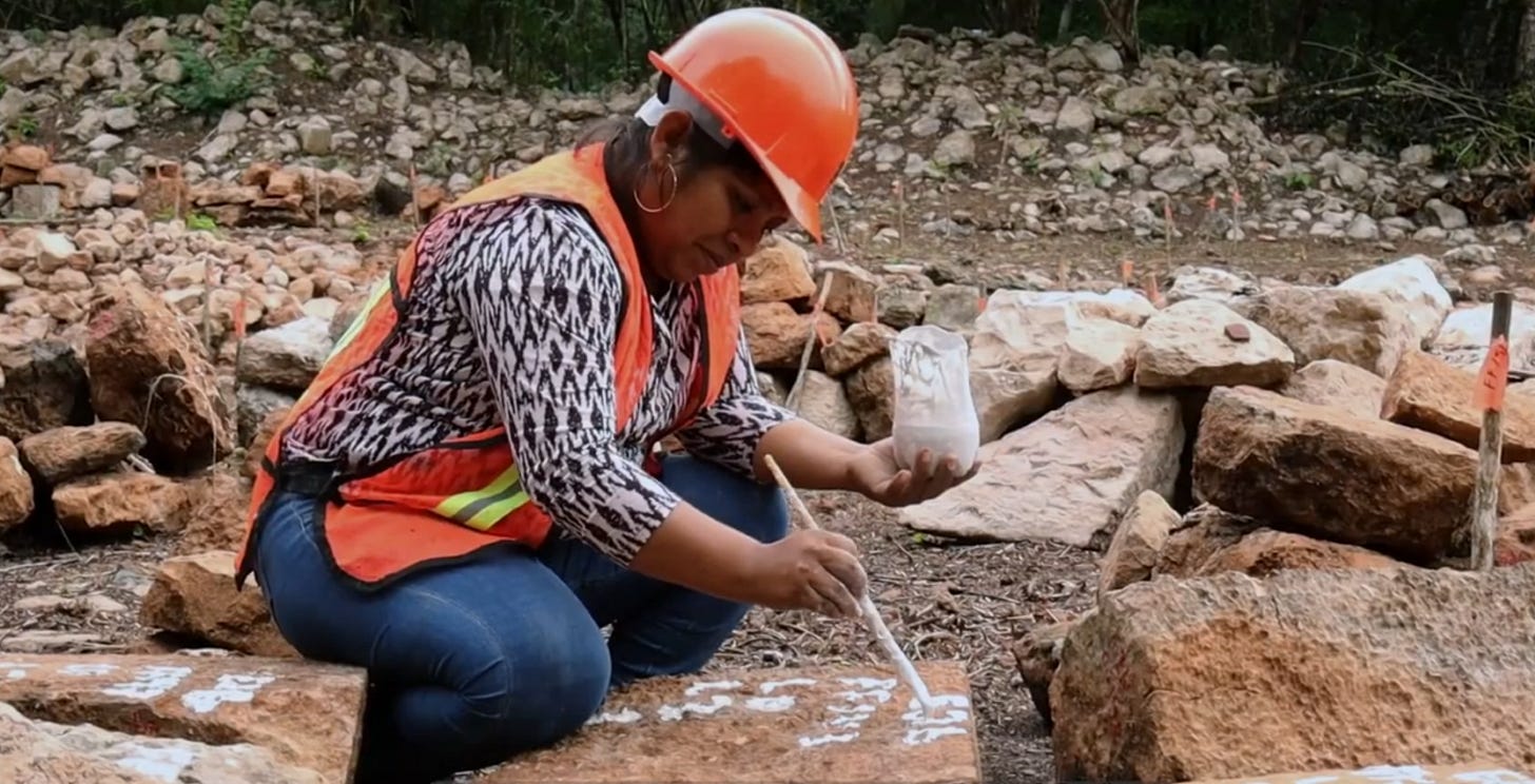 ◽️ Mujeres mayas habitantes de Yucatán contribuyen en las labores arqueológicas del INAH en Uxmal. La participación comunitaria ha mejorado su economía familiar y ha cambiado la percepción de los pobladores indígenas de la zona respecto del complejo. Angélica Collí Abnal, de San Simón, explica: “Es nuestro patrimonio, también de nuestros hijos; hay que cuidarlo.”