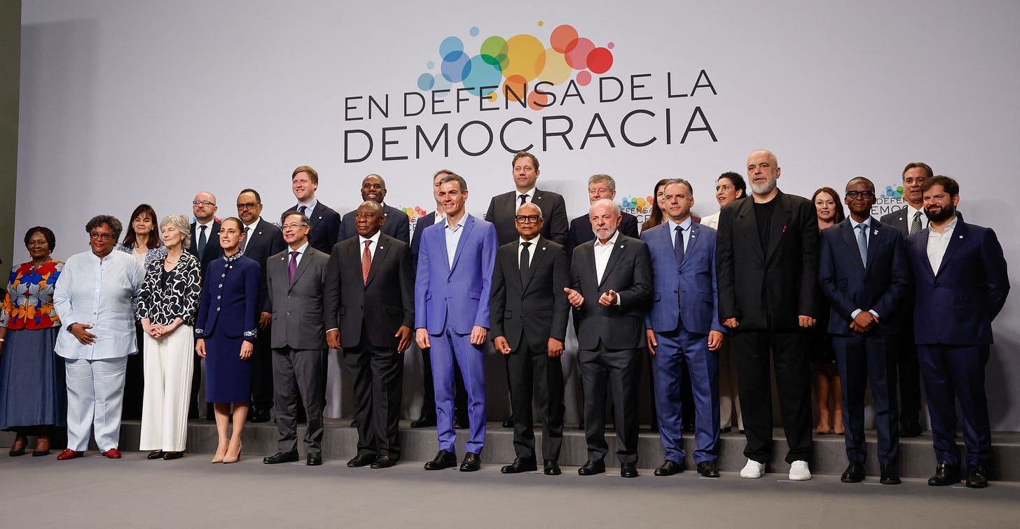 A few days ago in Barcelona, President Claudia Sheinbaum joined her counterparts, Spain’s Pedro Sánchez, Brazil’s Lula da Silva, Colombia’s Gustavo Petro, South Africa’s Cyril Ramaphosa, and Uruguay’s Yamandú Orsi, among a total of 20 progressive heads of state, to deliver a clear message against the international right-wing agenda led by Donald Trump. This Fourth Summit in Defense of Democracy concluded with a declaration from 20 countries against “military intervention in Cuba,” the war against Iran, and the lack of control over social media, which fosters disinformation and hate.